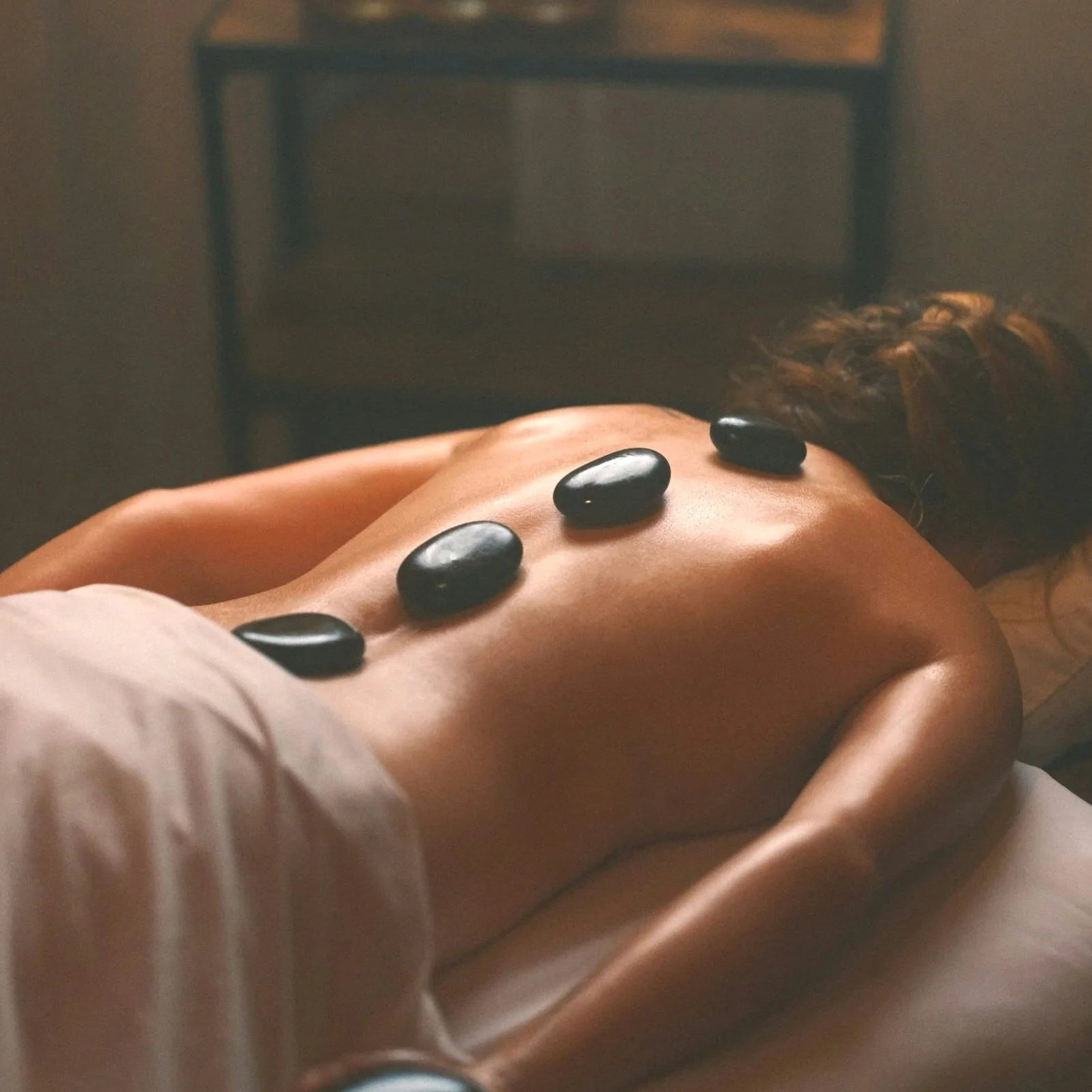 Hot rock massage is a therapeutic massage using smooth, heated basalt stones placed on key body points and used for massage strokes to deeply relax muscles, improve circulation, and relieve tension. It combines heat therapy with traditional massage to melt away knots and reduce muscle tension and stress.
